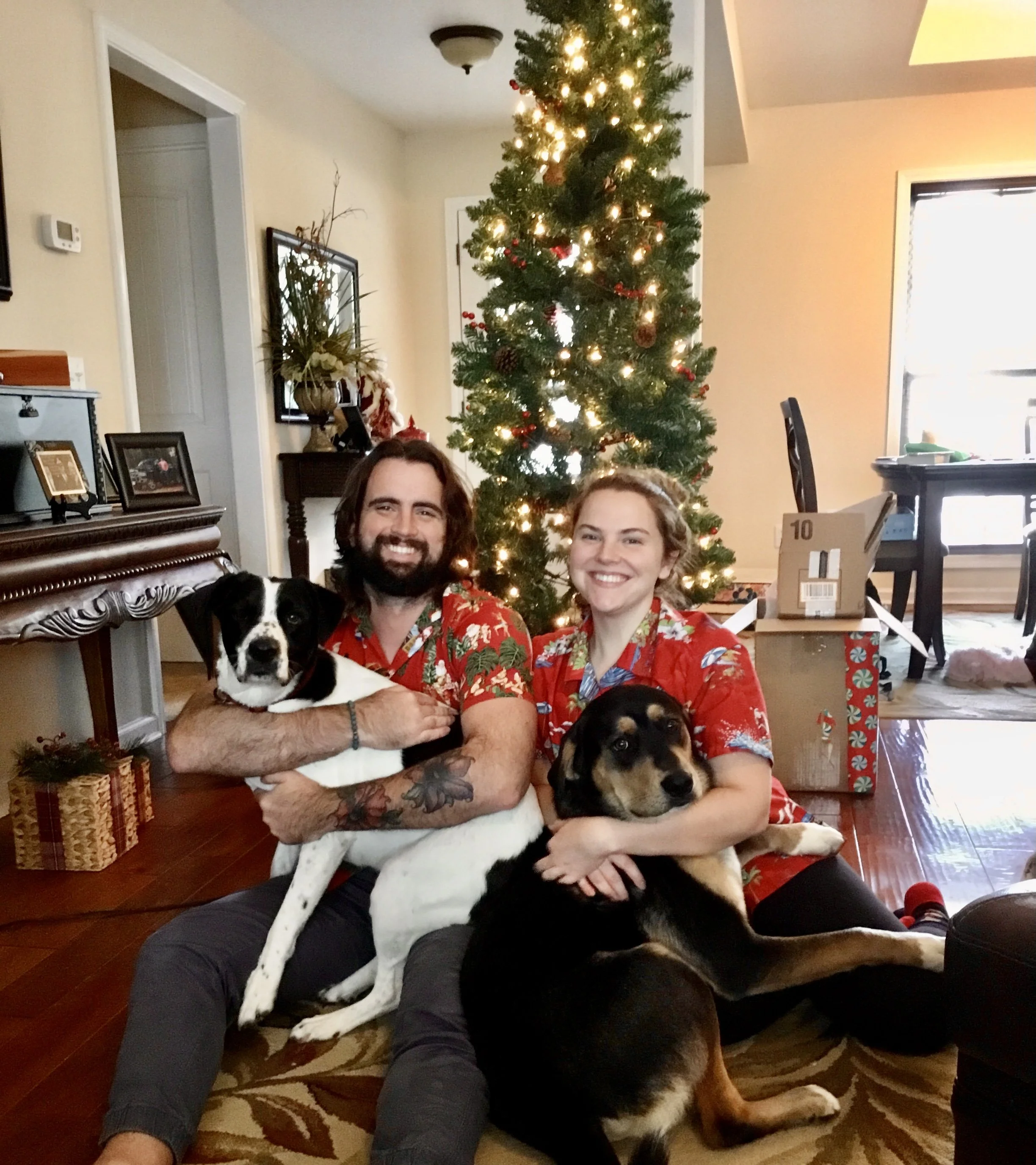 Our story began in February 2020, you know - a totally normal and uneventful moment in history. The first year and half of our relationship was spent social distancing, wearing masks in public, and making our own at-home date nights with movies and themed dinners. Strangely enough, the pandemic gave us the opportunity to get to know each other as we truly are, and from there, we’ve built a life and home together that is true to us. We spoiled our two goofy and rambunctious dogs Penny and Huckleberry, celebrated holidays, visited friends and family all over the US, moved cities, crafted impeccable Halloween costumes, played countless board games, and perfected our favorite recipes. We got engaged on a perfect fall weekend in Boston, MA and began planning the party of a lifetime.